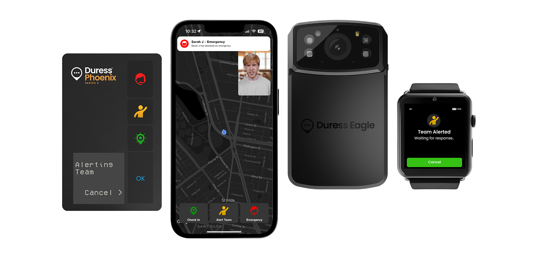Duress delivers trusted safety solutions that stream live video, audio and location directly to our A1-Graded 24/7 Monitoring Centre for real-time response and emergency escalation.