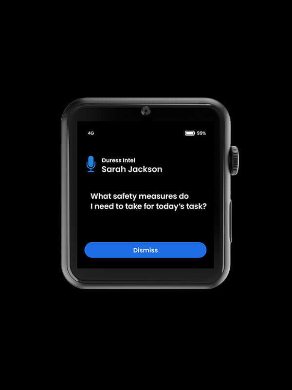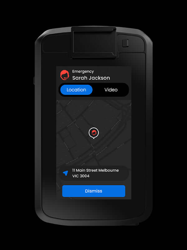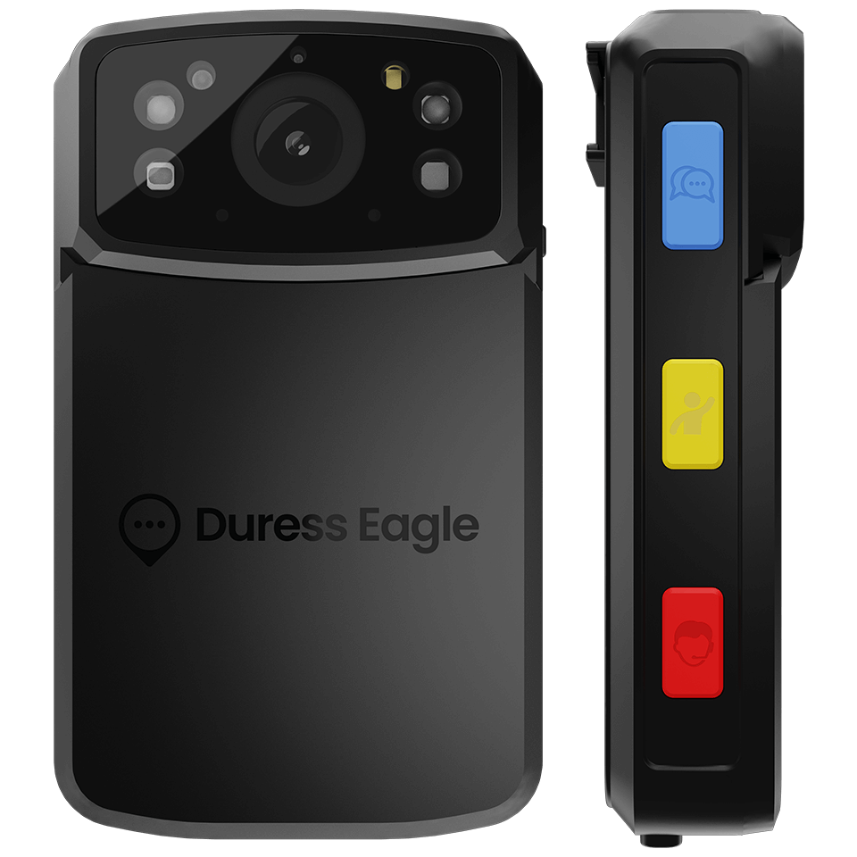 Duress Eagle is more than a body camera. Our safety device transforms team safety with emergency mode. Press the red button to share live video, audio and location. This alerts police and notifies your managers right away. Live video verifies the emergency for a prioritised response. With location updating every 5 seconds, emergency services know exactly where to go.